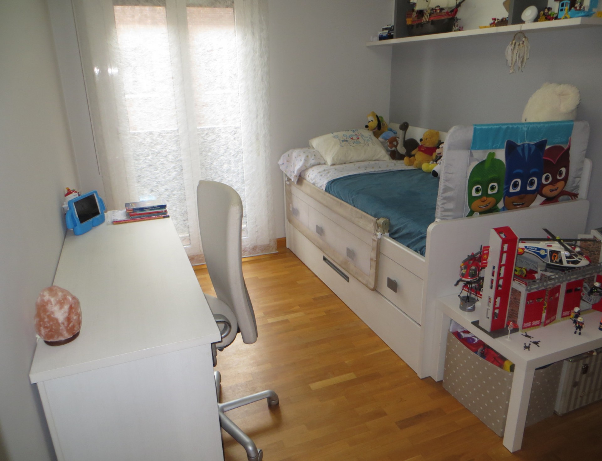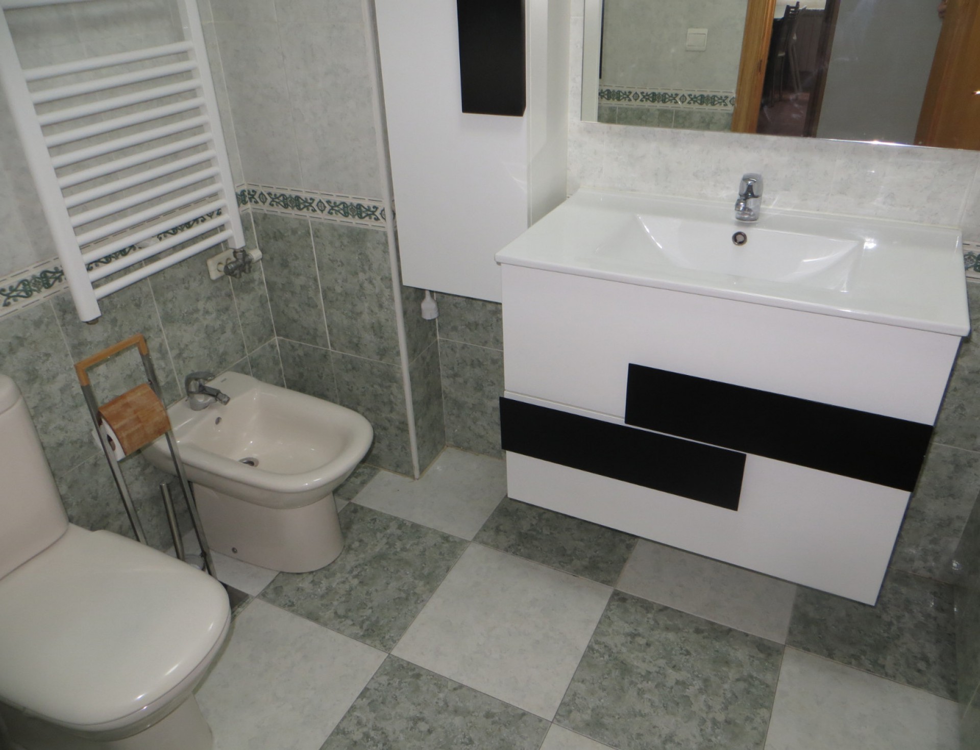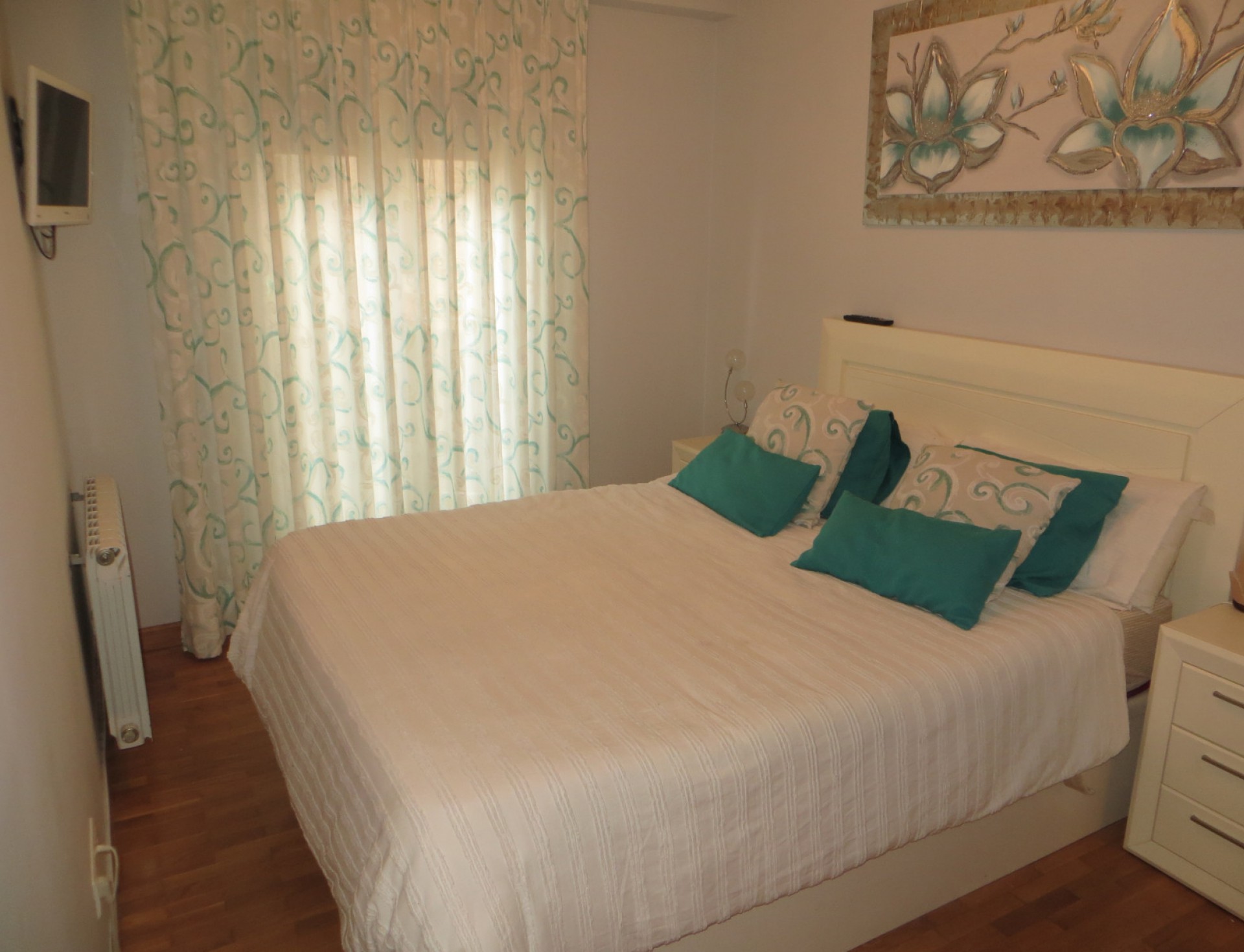 Son 3 dormitorios, salón, cocina amueblada con electrodomésticos excepto lavadora, 2 baños amueblados(uno de ellos en suite), amplia plaza de garaje y trastero. Dos de los dormitorios tienen armario empotrado.