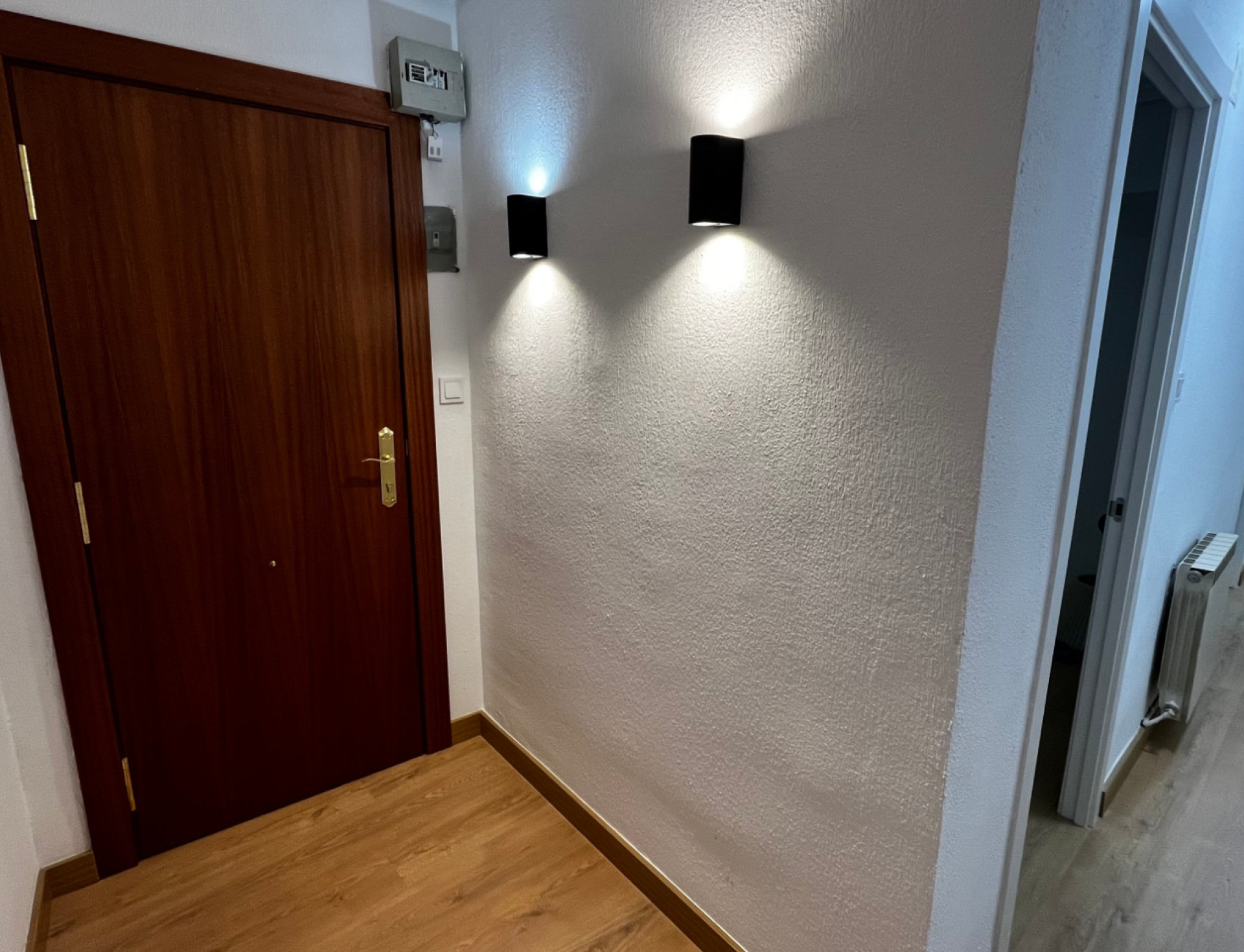 La vivienda está lista para entrar a vivir y se distribuye en tres dormitorios, salón, cocina independiente, baño con plato de ducha y dos galerías cerradas. La puerta de acceso es blindada, las ventanas de climalit oscilobatientes, el suelo es laminado y puertas interiores son madera maciza. La calefacción es de gas natural, el edificio dispone de ascensor y elevador automático para personas de movilidad reducida, lo que añade valor y comodidad al inmueble.